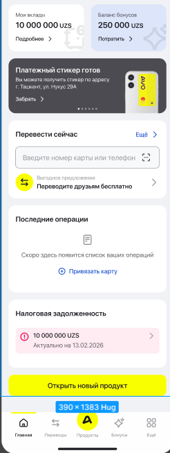 Endi AVO ilovasida soliq bo'yicha qarzidorlikni ko‘rish imkoniyati mavjud. Soliq bo'yicha qarzidorlikni ilovaning asosiy sahifasida ko'rishingiz mumkin . Shuningdek, siz qarzidorlikni bizning mobil ilovamiz orqali to‘lashingiz mumkin. Ilovada “To‘lovlar” bo‘limida “Davlat xizmatlari” orqali to‘lash mumkin. To‘lov amalga oshirilgandan so‘ng, ma’lumotlar ilovada 30 kun ichida yangilanadi.
